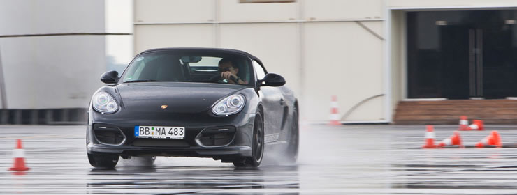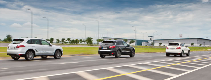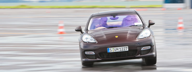 After pumping our adrenaline with the Moose Test, our instructor Gunther Ofenmacher set us up with a drive in a Cayman S, 911 Carrera 4 S and a Porsche Panamera Turbo. The handling circuit consisted of high speed runs on a straight with a series of corners thrown in to demonstrate the different handling characteristics of the cars.