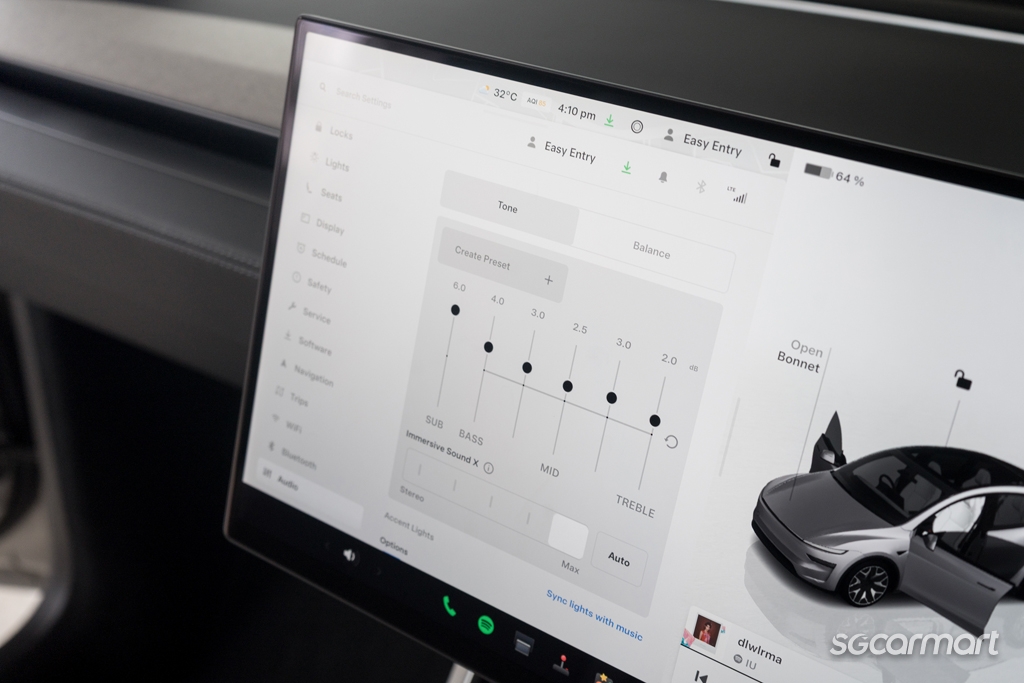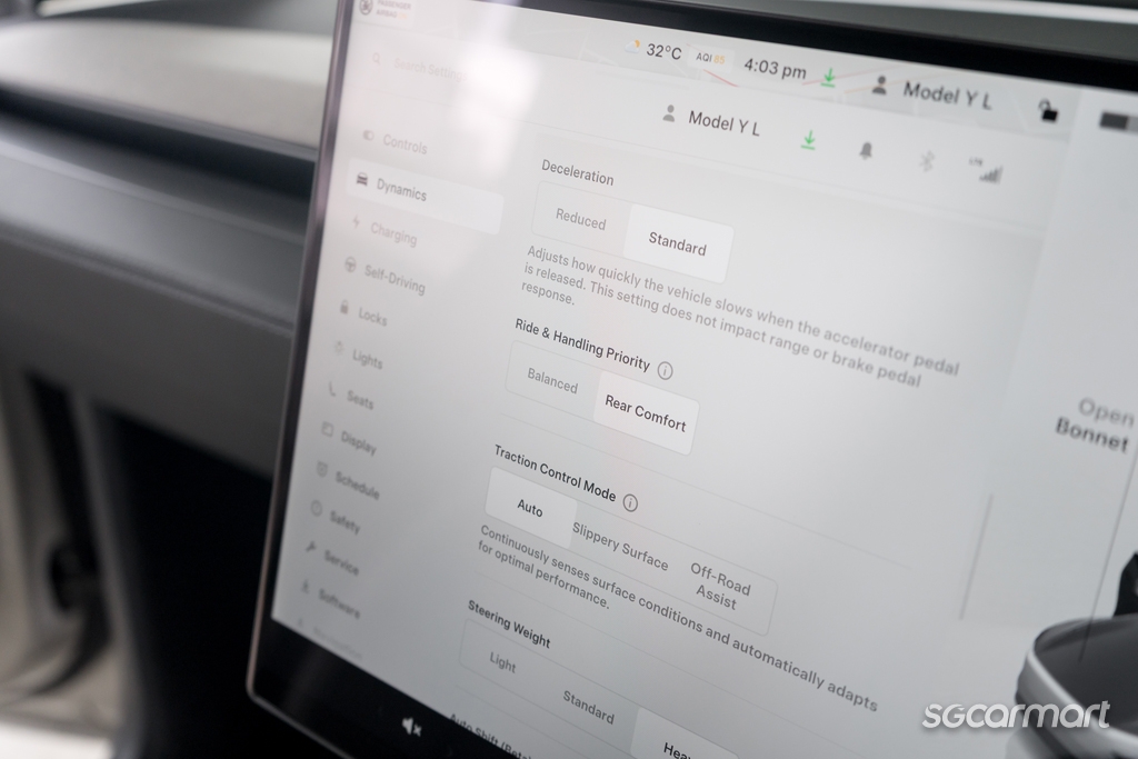 Unlike pre-existing Model Y variants, Tesla also claims to have given the Model Y L adaptive suspension. But truthfully, the differences when toggling between ‘Balanced’ and ‘Rear Comfort’ modes are so minute (at least from our experience) that they feel negligible. Conversely, while the ride still tends to the firmer side, the longer wheelbase does seem to bestow the Model Y L with that bit more composure over rougher roads.