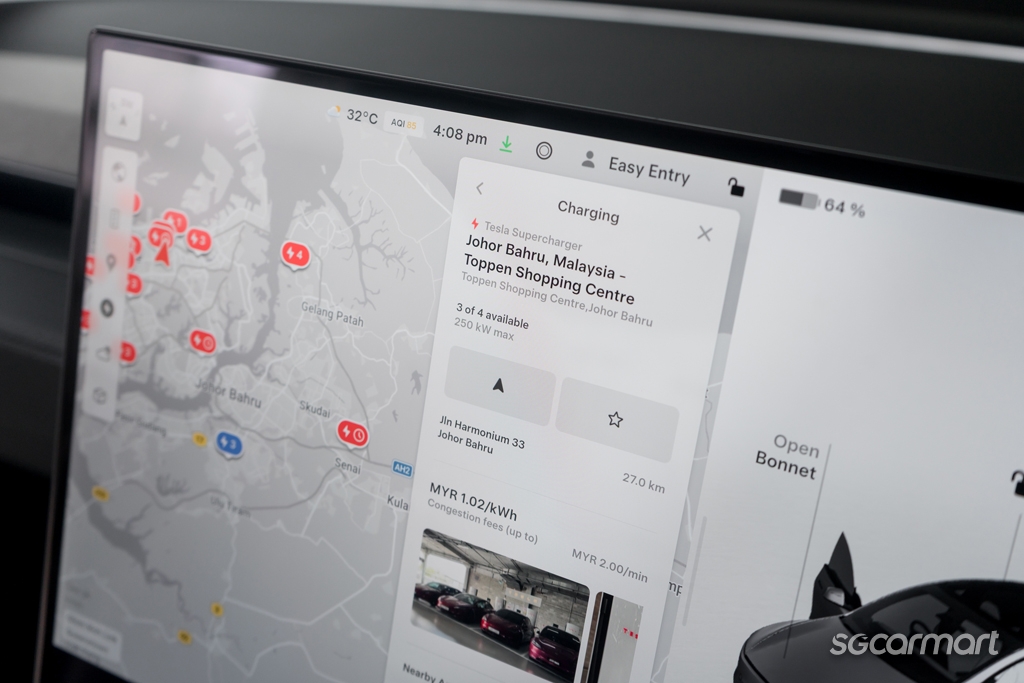 Tesla's Supercharger network in Singapore also remains peerless in its sheer combination of seamless connectivity and speed. At the Waterway Point station, we logged a peak charging rate of 147kW (the maximum for the Model Y L's battery is 250kW) and a speedy 20-minute top-up to 80%, upon first arriving with a 29% state-of-charge.