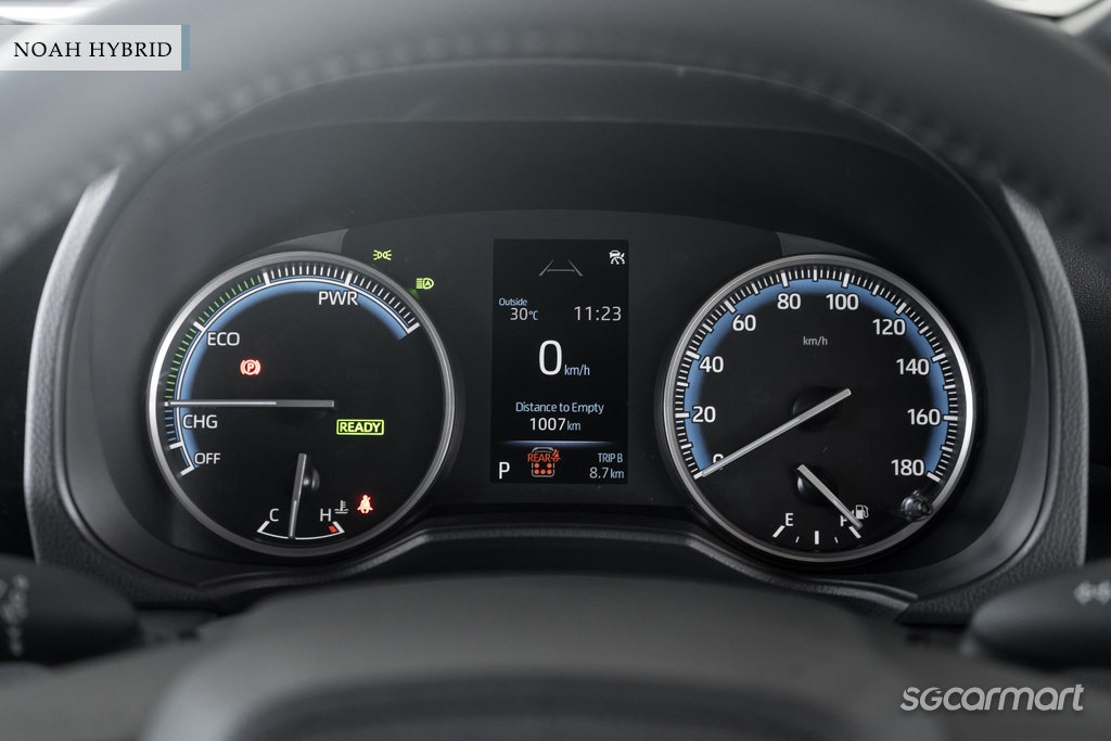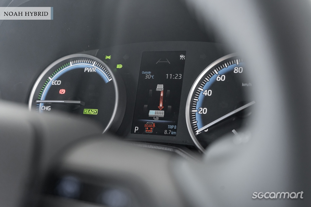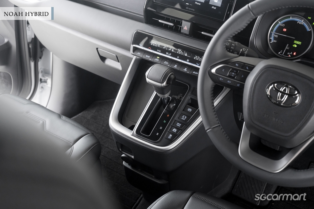 Credit is due to its sleek dashboard, which comes with padded surfaces, light stitching, and a snazzy dual 12.3-inch screen setup for your infotainment touchscreen and driver's display. The former even supports Apple CarPlay and Android Auto wirelessly (if you're an Android user, you'll have to pack a cable on the Noah).