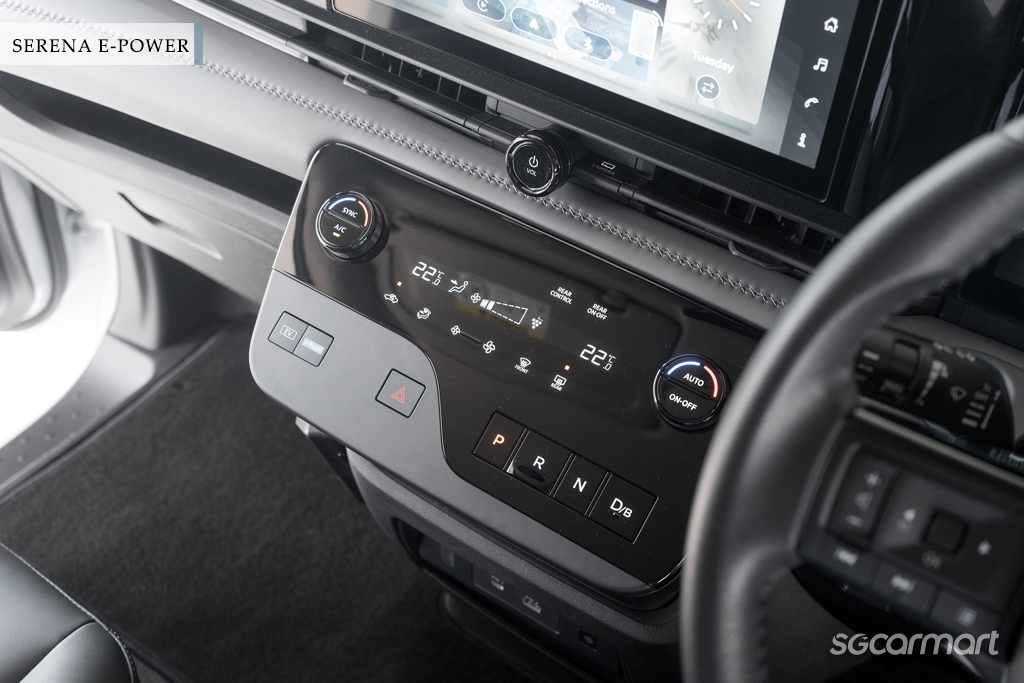 If you thought that MPVs had to be all function and no form, the Serena continues to prove otherwise up front. While it doesn't pursue a full touch-operated route, it does present a cool-looking touch panel for your air-conditioning controls, which throws nicely-weighted rotary dials for adjusting temperature into the mix.