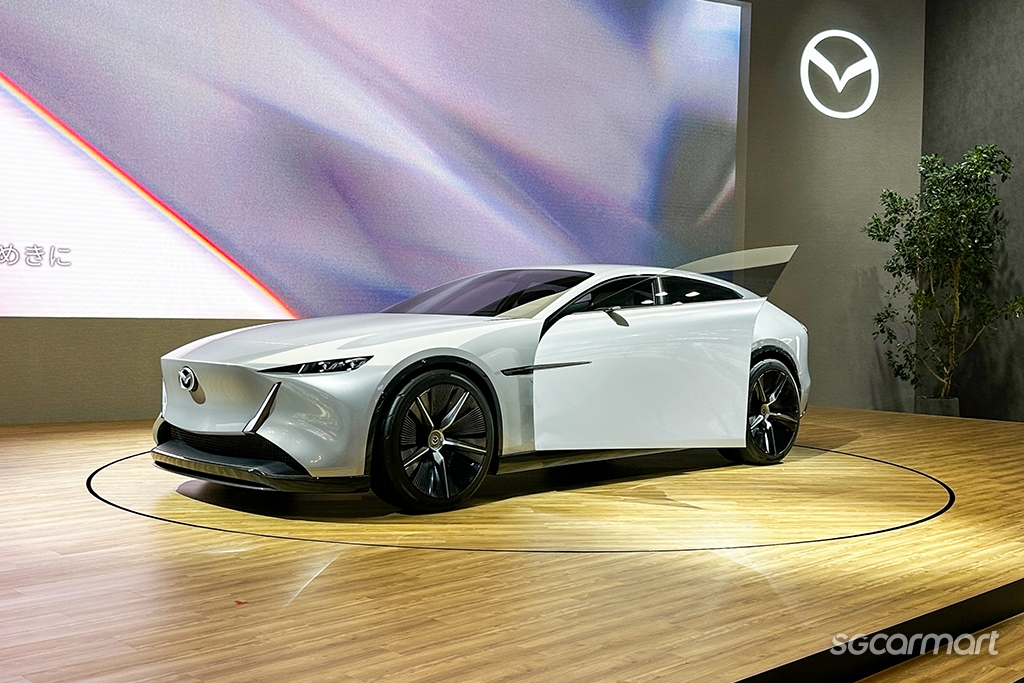 Still, it's the Vision X-Coupe that continues to steal the show here at Tokyo Big Sight. Known as the third phase in Mazda's lineup, this concept car will represent future Mazda models to come. Boasting a sleek silhouette, combined with a simple sheet metal and a lovely dark green interior, the all-electric Vision X-Coupe is capable of about 510bhp and has a range of up to 800km on a full charge.