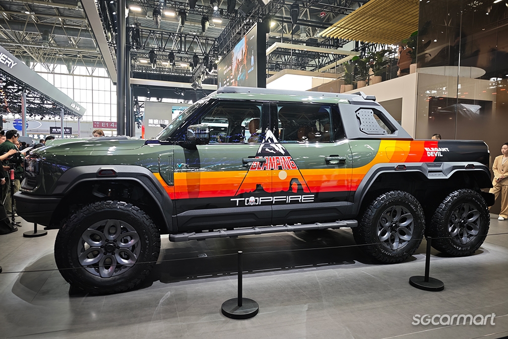 While that’s already plenty impressive, what caught our eyes was this heavily modified concept that was showcased in the Jetour booth - the Topfire 6x6 F700. There's just something about a massive 6-wheeled truck. Maybe it's due to its minibus-like length, or maybe it's the idea that one could run over any kind of terrain and anything with a behemoth like this.