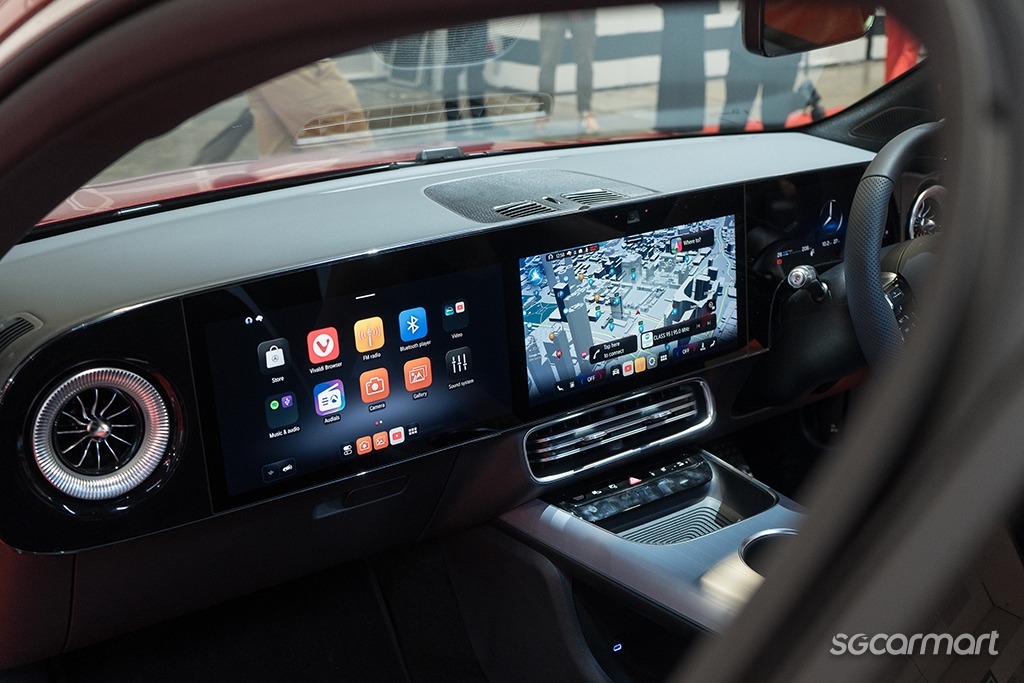 Inside, the new fourth-generation MBUX powers the infotainment, and is the first of its kind to integrate AI from Microsoft and Google. The new MBUX Superscreen features up to three displays, with graphics rendered by the Unity Game Engine.