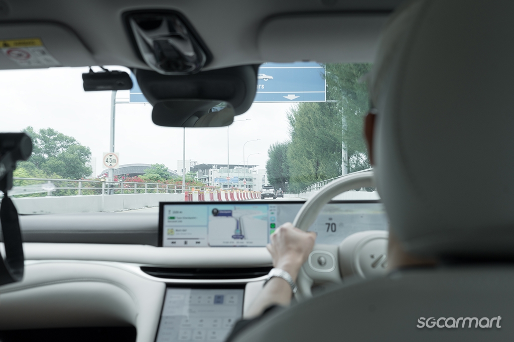 We start the trip at close to 10:00am in the morning and are heading for the Tuas causeway with the IM 5 stating that it has 374km of range left. This 'Luxury' variant of the IM 5 we are in, equipped with a 75kWh battery and offering a total power output that allows it to be registered here with a Cat A COE, should give us an energy efficiency that comes close enough to what a typical electric car owner will face when making their own drive up.