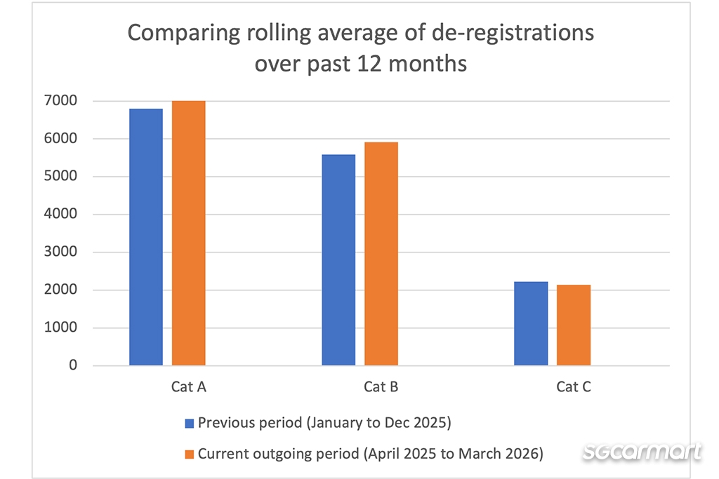 While the litany of additional factors makes predicting the COE supply for the upcoming quarter an impossible task now, Sgcarmart continues to monitor vehicle de-registrations on our shores.