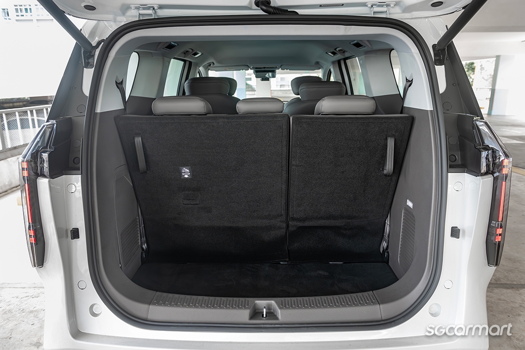And the Maxus MIFA 7 Elite comes with plenty of handy features as well. Need to load up the car with the entire week's worth of groceries? There's not only a powered tailgate here, but also a total of 280 litres of space, which can be expanded to 760 litres (the largest in its class) if you fold the last row of seats down. For context, that means you'll be able to fit one 28-inch alongside two 20-inch suitcases even with all seats up. And the Maxus MIFA 7 Elite comes with a total of 45 different compartments in its cabin so you can bring along all your family's essentials.