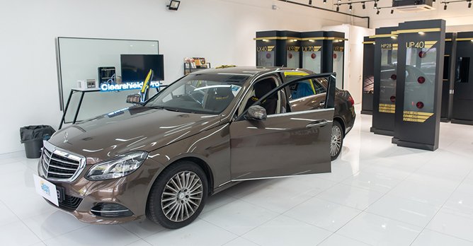Clearshield Pro, Solar Gard's paint protection film, is also available here. It is applied to the painted surfaces of a car to protect them from debris such as rocks, bugs, salt and more. It is an extremely strong film that can withstand impacts by rocks, scissors and even knives without tearing, ensuring protection of your vehicle's paint. Unlike other products, Clearshield Pro can be stretched extensively without 'becoming matte', retaining the sheen of the glossy paintwork when it is stretched over the surface of your car during installation.