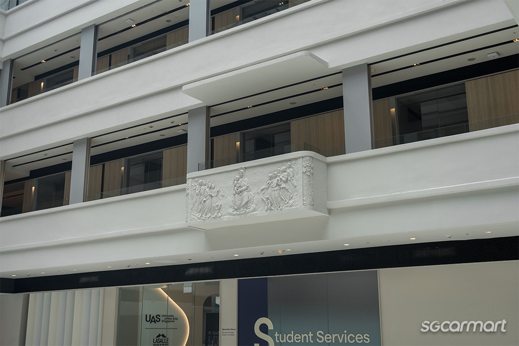 Stepping inside the building, we were immediately enthralled by some artfully-designed carvings on the interior walls reminiscent of those usually found in Roman architecture. And despite it being a "free entry" attraction, we couldn't help feeling a little intrusive, given that it is the workspace of those in the design industry and also home to the University of the Arts Singapore (UAS).