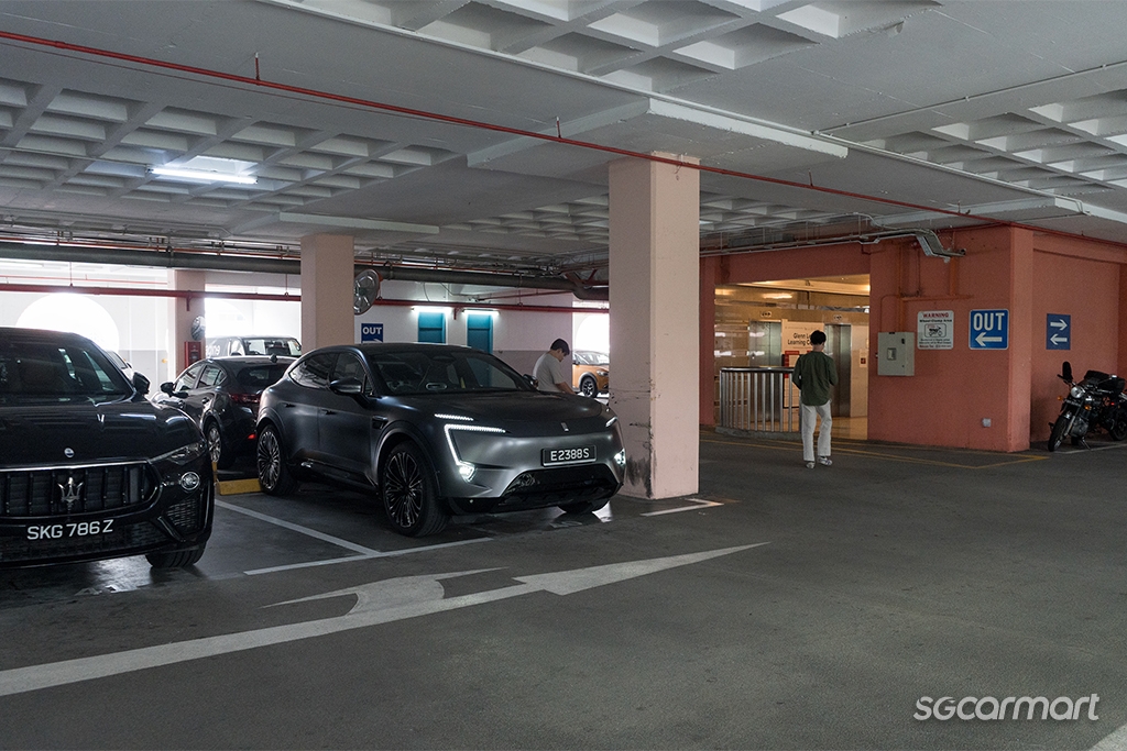 Ease of parking: 3.5/5. The AVATR 11 is nearly two metres wide, yet we had no trouble squeezing into a parking slot, with space to spare for opening the car doors. The carpark is fairly spacious, albeit a little old. It also does not offer a grace period nor motorcycle parking, so riders may feel a little hard done by. We also saw two AC chargers situated on Level Three of the carpark, allowing EV owners to power up their cars if the need arises.