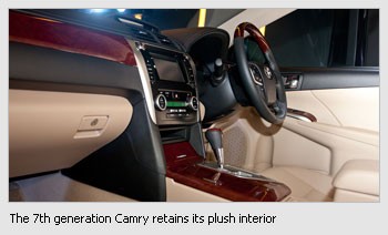 The 2.5-litre Camry has a better proposition. For a mere $6,000 more, you'll get a car that is mated to a better and higher 6-speed automatic transmission that will churn out a maximum of 181bhp and 231Nm of torque. These figures will send the executive sedan to thwe 100km/h mark in a shoter and more enthusiastic 9.7 seconds flat. Credit also goes to the dual VVT-i engine which controls the valve timing on both the intake and exhaust camshafts for optimal performance and efficiency at all engine speeds.Also available during launch will the Camry Hybrid which has a higher maximum output of 205bhp and 213Nm of torque. As a result, the car hit the century mark in just 8.6 seconds. More importantly, as a hybrid, it has an outstanding fuel economy of 5.8L/100km, which is an improvement over its predecessor. Also new in the Camry Hybrid is an EV drive mode which allows the driver to operate the car on the electric motor alone for up to 2km at lower speeds.