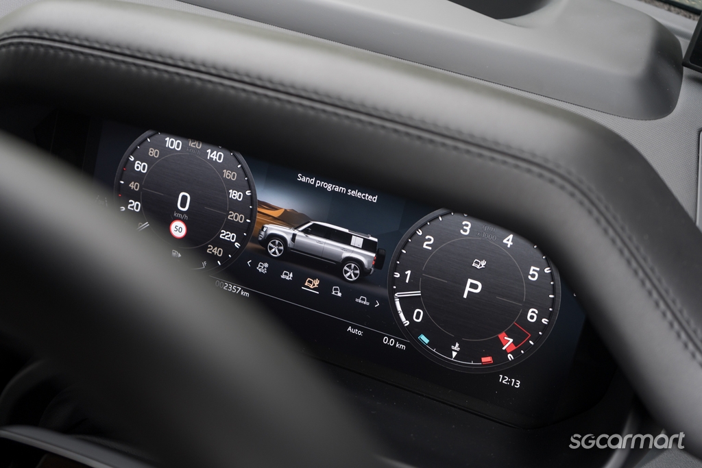 Whether you're hitting muddy fields or dry and sandy deserts, the Defender has an ideal drive programme that's just a few buttons away