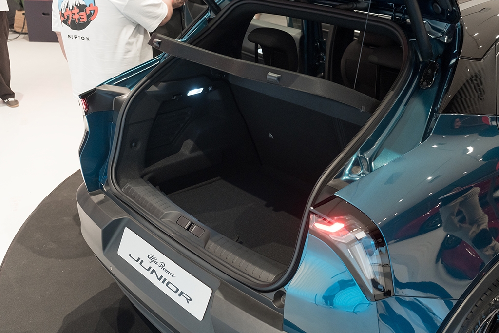 And that's not all the front has to offer - the Junior Elettrica also comes with "3+3" adaptive full LED matrix headlights, as well as the unmistakable "trilobo" motif (formed by the scudetto and lower air intakes). A glance around the rest of its exterior also throws up additional design details, with the laser-etched "biscione" on the C-pillar and the iconic "coda tronca" rear (referencing legendary models like the Giulia TZ).