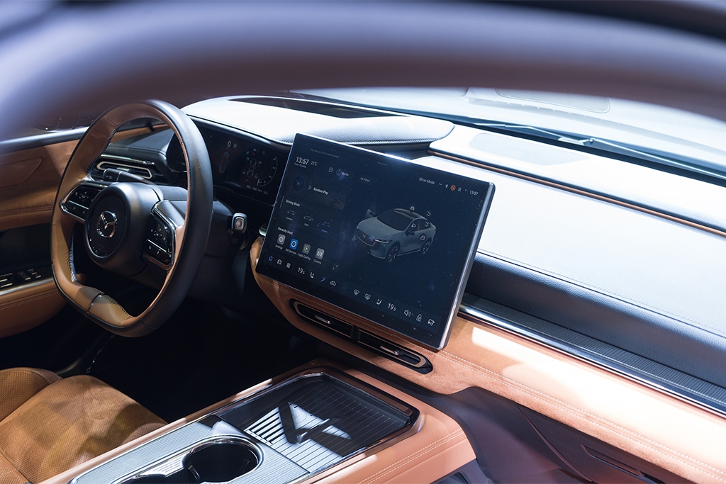 More standout exterior details include frameless doors, integrated door handles, and a bold lighting signature. At the front, its glowing signature wing delivers a front fascia reflecting Mazda's DNA. Parallel lines running along the car's body emphasise its sleekness, while the lower door surfacing is said to showcase the movement and light-play that define Kodo design. It also comes with 19-inch aerodynamic wheels that feature a sporty five-spoke pattern.