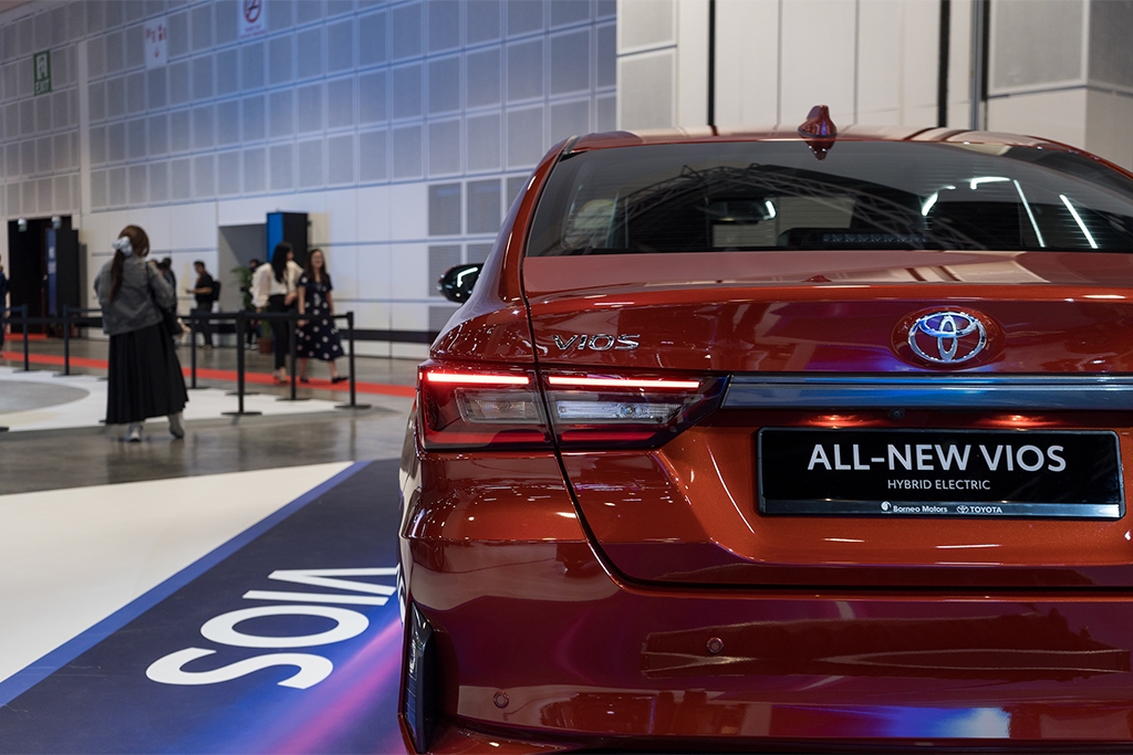 But our main focus is on the Vios Hybrid, offered for the first time in Singapore as a self-charging full hybrid. Its refreshed exterior features a low-profile bumper, sculpted side pontoons, six-window design, and sleek fastback silhouette for a dynamic, stylish presence that turns every drive into a statement.