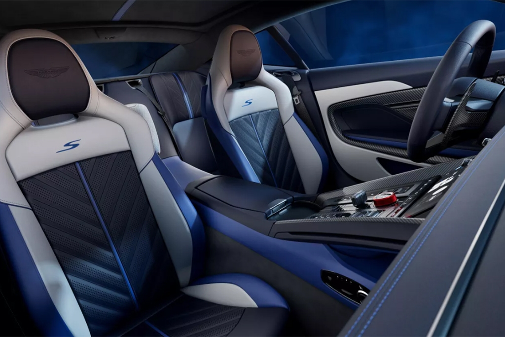 The DB12 S comes with a choice of three interior trim environments: Accelerate leather and Alcantara trim, Inspire S semi-aniline leather, and Alcantara and Inspire S full semi-aniline leather. Both Inspire S packages include S Herringbone quilting with micro-perforations and an Alcantara headlining. DB12 S is fitted with 16-way Sport Plus electric front seats as standard, plus the option of a Carbon Fibre Performance seat.