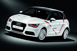 Dubbed as the Audi A1 e-Tron Germany Olympic Team Edition, the one-off wears the pride and colours of Germany and rides on a bespoke set of white multi-spoke alloys boasting touches of the country's national colors. Other styling changes include the black bezel headlamps, an exclusive interior trim that adopts a similar patriotic styling, while the roof and side mirrors have "2012" plastered on them.