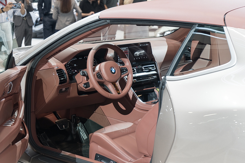 Beyond performance and an unmissable design, the Skytop also embodies the best of BMW luxury. The two removable sections of the soft-top roof are trimmed in synthetic leather, while the roll-over bar behind the seat is also leather-wrapped. Similarly, the seats are wrapped in the same brown shade of leather as the roof, and are accented by brogue-style decoration. You will also find crystal applications embedded into the cockpit, pairing with premium features like soft-closing doors and the Bower & Wilkins Diamond Surround Sound System to deliver a sumptuous experience befitting the car's reportedly half-million euro price tag.