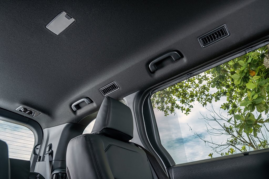 Its dual powered sliding doors are equipped with kick sensors for hands-free activation, and open to reveal full-length side access grab handles for easier entry and exit. Those lucky enough to find themselves seated on the two captain's chairs in the second row are also treated to roller shades and a fold-up sidetray with two cupholders.