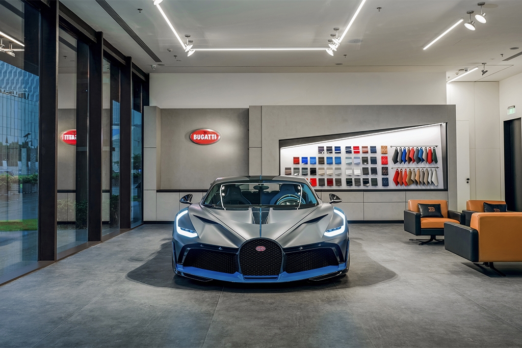 In a special temporary display, an exclusive showcase of the Bugatti Home collection by Luxury Living adorned the new vitrine. These include pieces such as the Type_3 sofa and ottoman in Voltaic Blue, the Type_14 rug, and the Type_11 side table.