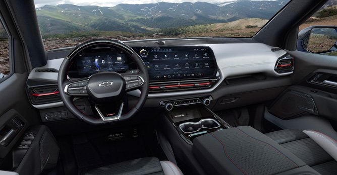 Step inside an RST Chevrolet Silverado EV and a 17-inch infotainment screen stands ready, paired with an 11-inch driver instrument display. An additional head-up display with a field of view of over 14 inches, a ensures that a driver will have any information he/she needs.