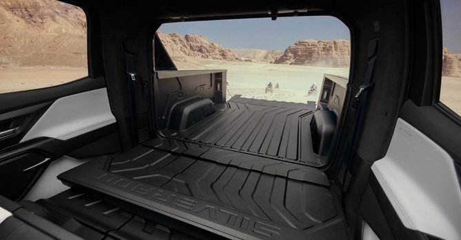 The Silverado EV will be offered exclusively as a Crew Cab model, which utilises a shorter front overhang for more spaciousness in the cabin while enhancing forward vision. The second row is pushed rearward in this bodystyle, allowing tall passengers to stay comfortable no matter where they sit.