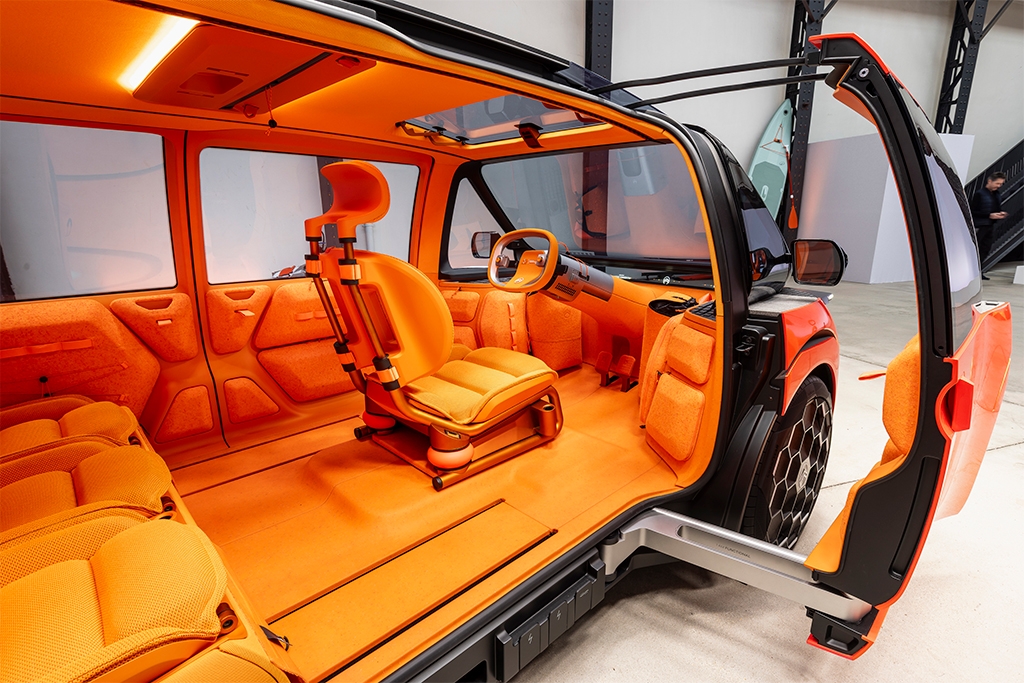 A true living space, Elo was designed to be an everyday companion: A place to rest, play, or work thanks to its complete and intuitive modularity. It takes full advantage of a 100% electric architecture by offering a small size that conceals exceptional interior space. Despite its compact minivan design (4,100mm), its ultra-spacious and modular interior can accommodate up to six people.