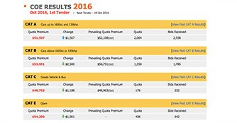 Premiums for Cat A, for cars up to 1,600cc in engine capacity and with an output of no more than 130bhp, went up by $1,507 (three percent) to end the bidding tender at $51,507.
