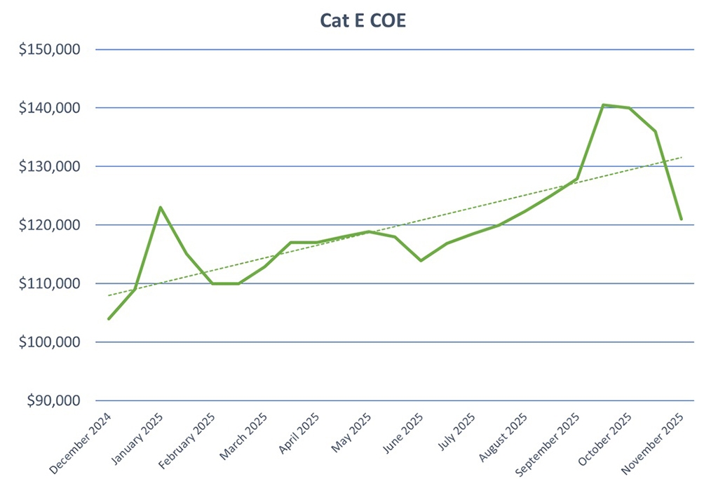 COE Results Nov 2025 1st Bidding: Cat A, B and E dive!