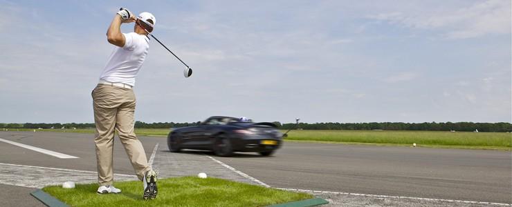 The 571hp SLS AMG Roadster, piloted by David, caught a golf ball in the cabin of the car 275 metres from the tee. Then, the car was travelling at 120mph (194km/h).