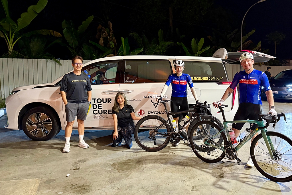 On 2 April 2026, at three in the morning, Wilfred Diepeveen and James Guardino of the Specialized Mavericks (a locally-based cycling team) set off from the MG showroom in an attempt to cover a distance of more than 900km, from Singapore to Kuala Lumpur, in support of this cause.