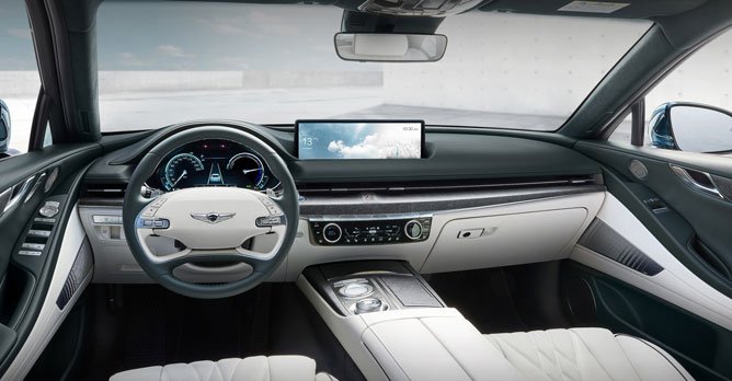 Genesis sourced various natural or recycled materials for its interior, such as leather with natural dyes for the seats, console, and rear seat armrest, eco-friendly natural wood trim with recycled wood, and environment-friendly, recycled Polyethylene terephthalate fabrics.