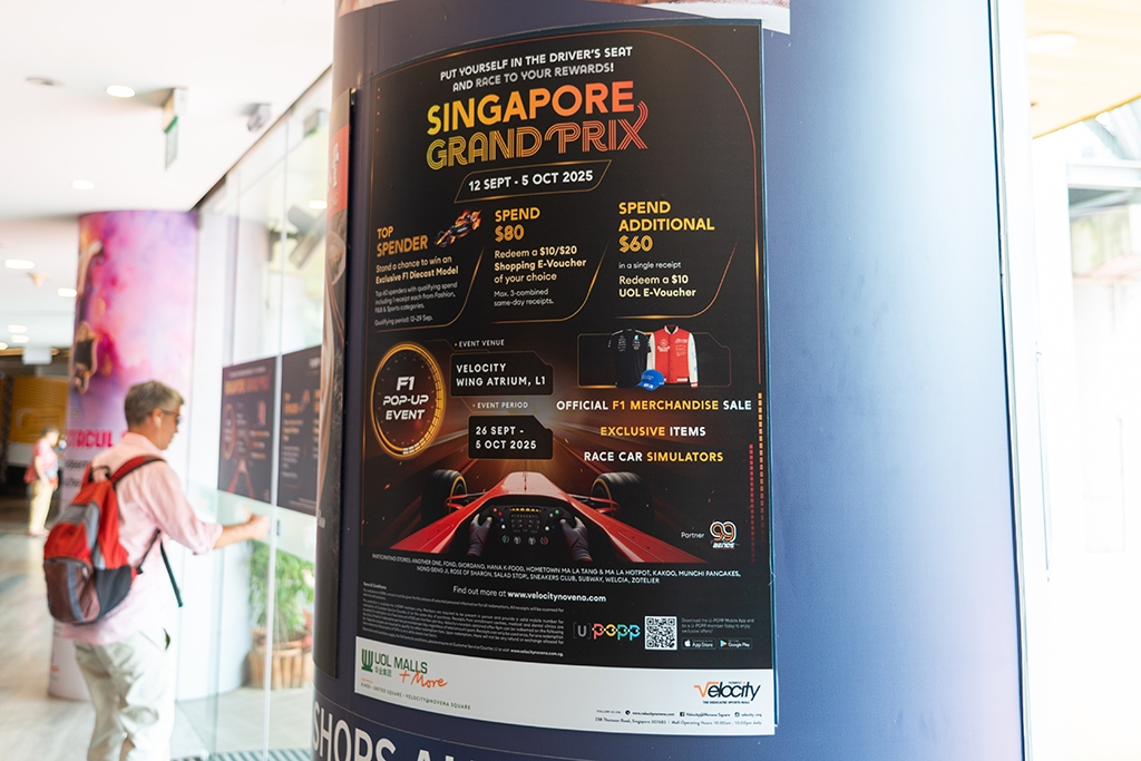 The mall-wide Formula One campaign allows mall-goers to enjoy a slew of rewards when they shop at Velocity@Novena Square