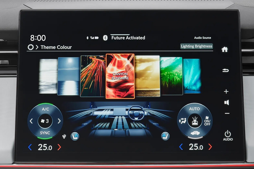 Inside, it combines spaciousness with comfort technologies, including ventilated front seats, an eight-way power-adjustable driver's seat with memory function, four-way power-adjustable front passenger seat, adjustable ambient lighting, and a Plasmacluster air purification system.