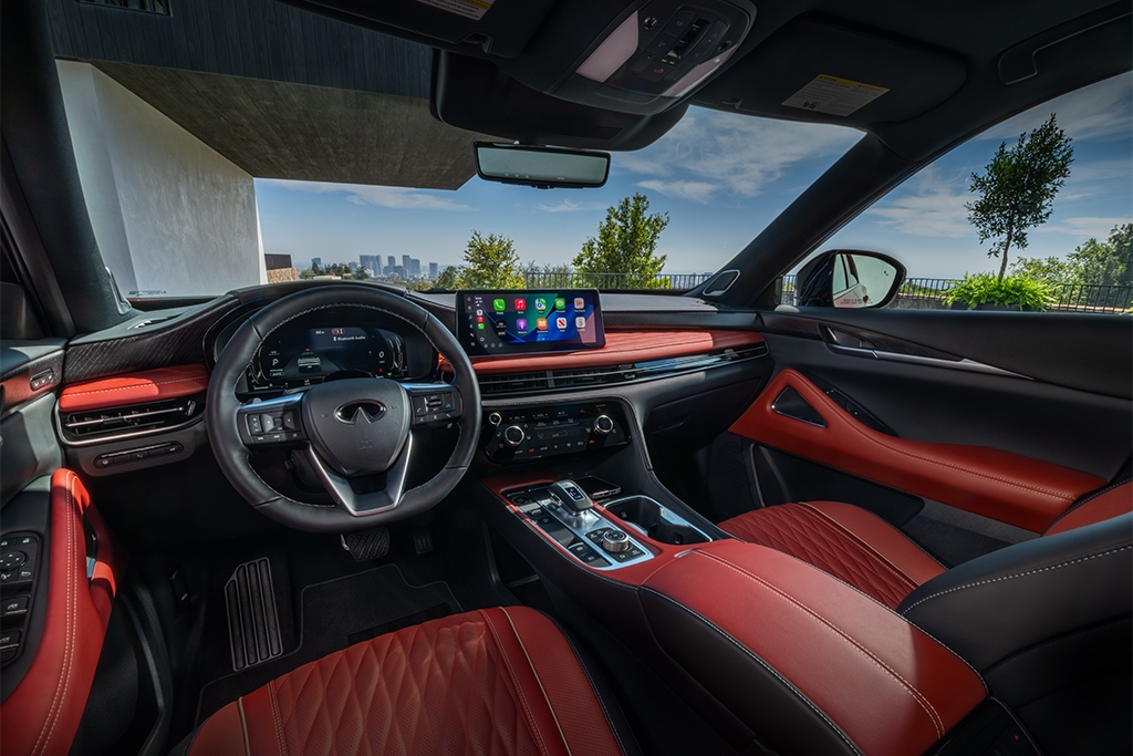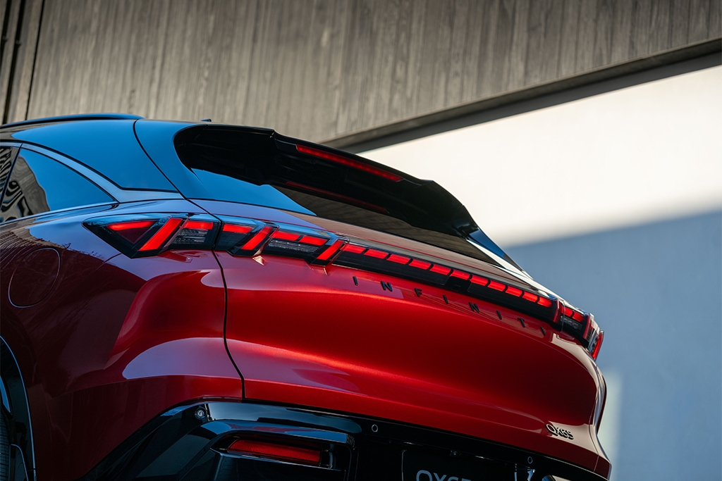 The QX65 also introduces a new exterior colour: Sunfire Red, which features genuine gold-coated glass flecks.