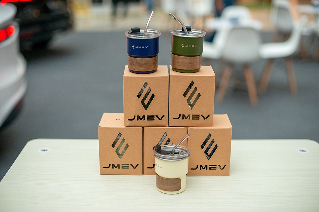 Visitors who drop a follow on JMEV's socials will get a free custom JMEV mug, while those who drop a cool $188,888 on the JMEV Elight will get a free tea set