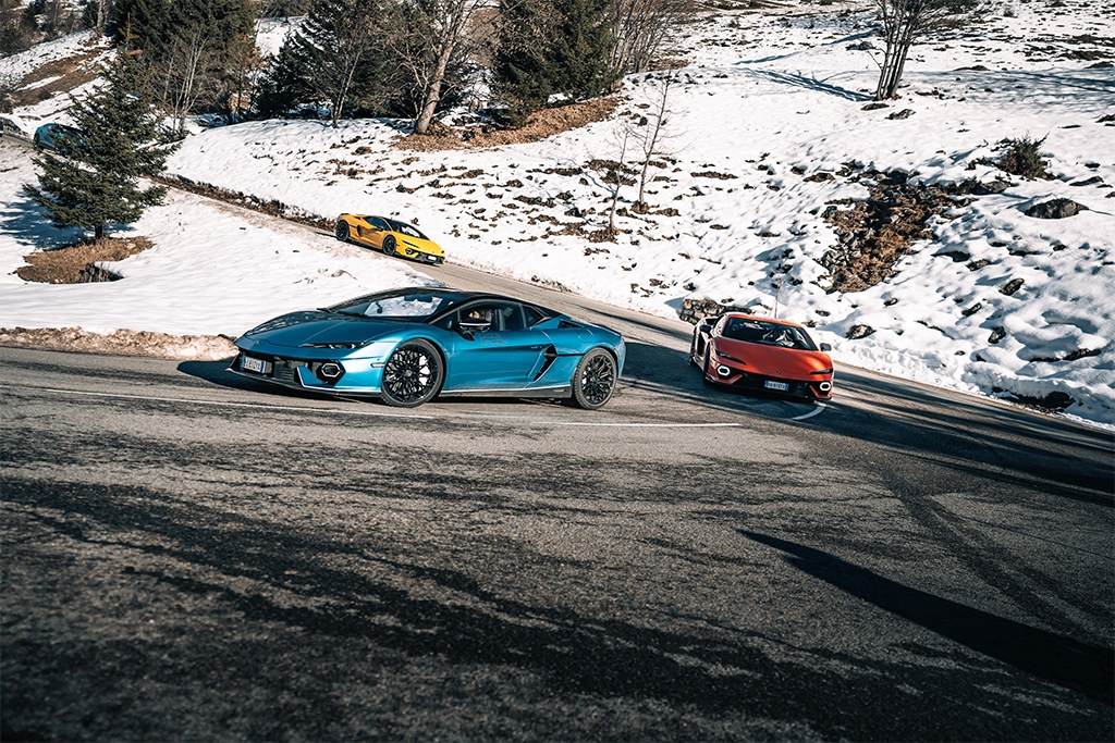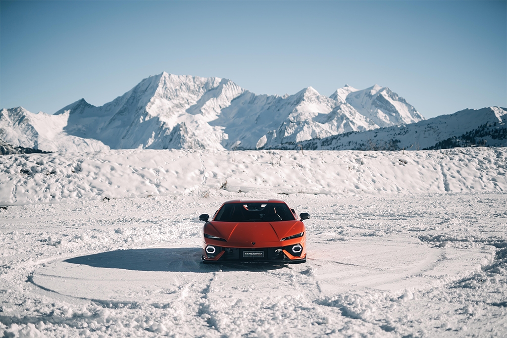 The route through Les Trois Vallees was designed to express the full dynamic spectrum of the Temerario: Flowing mountain passes, technical switchbacks, and high-altitude straights offering a clear sense of the model’s agility, usability, and elevated driving precision. The journey continued on a dedicated ice track, where participants experienced drifting sessions led by Lamborghini's professional drivers.