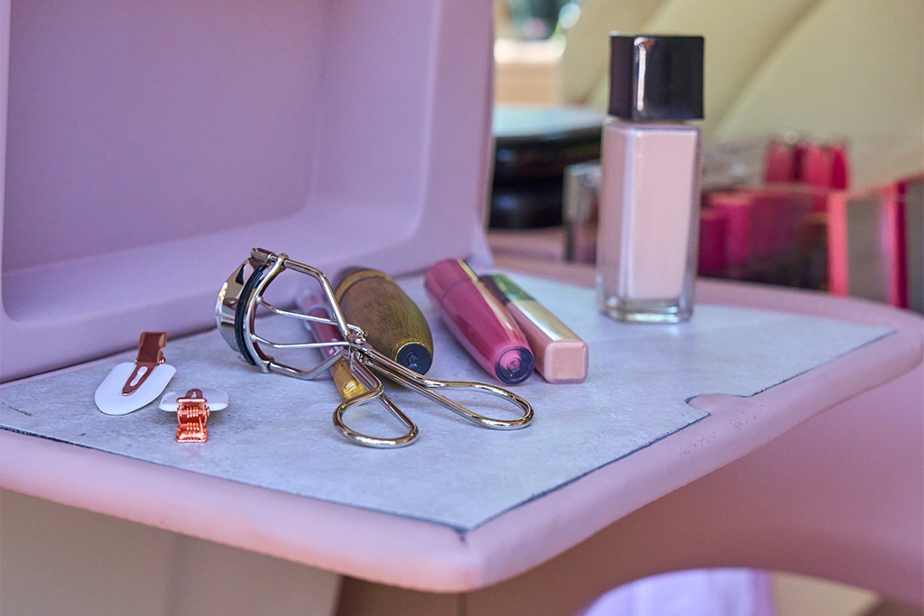 Up front, an on-the-go nail bar with UV/LED lighting offers quick polish changes, while the second row reveals a professional-grade backseat beauty station, complete with stone-inlay tray, a halo-lit skylight, and a custom full-width dropdown Robern illuminated mirror. Compartments throughout provide an organised storage solution, while features such as a refrigerated makeup console and an LED-lit handbag storage compartment ensures accessibility on the go.