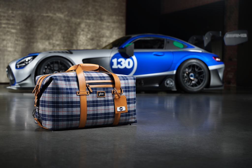 Customers also receive a personalised bag, which is designed to match the seat cover in a stylish blue chequered pattern and offers sufficient space for a host of racing equipment.