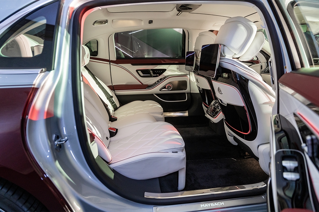 And for all its bespoke details, Maybach's signature touches of comfort and tactility is still fairly noticeable: High-pile black floor mats finished with crystal white border and red topstitching, along with four standard head-restraint cushions with two matching pillows in the S680 Edition Beyond 60 colours.
