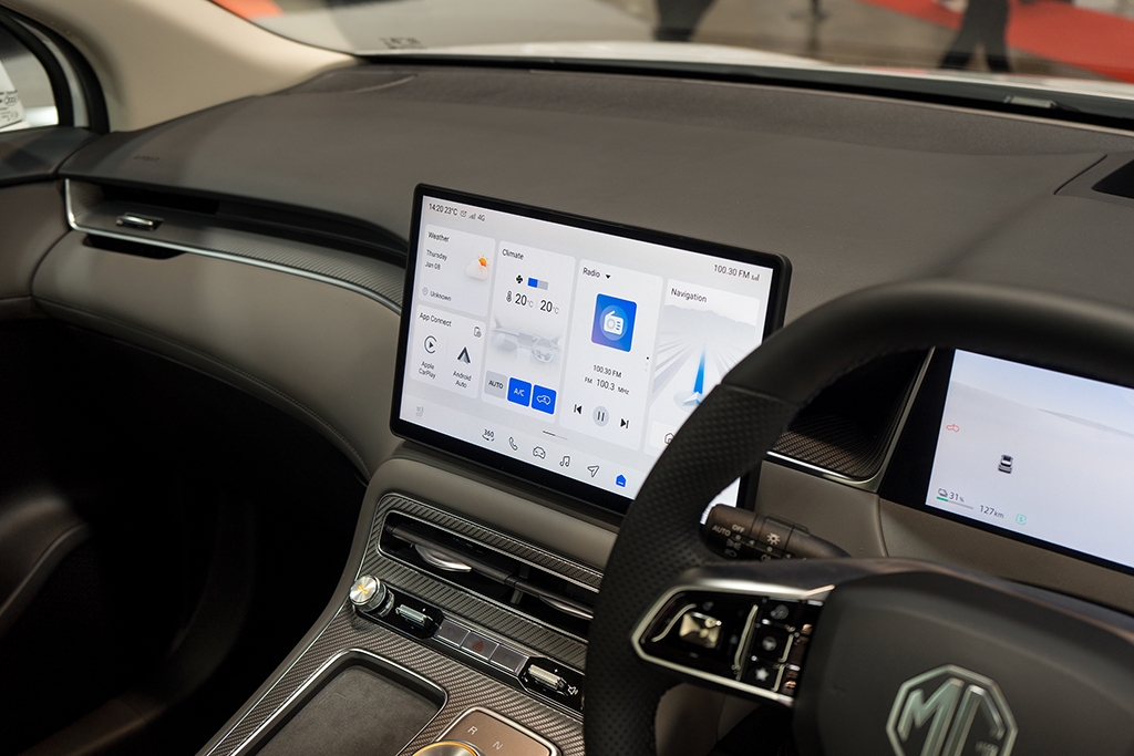 To lend the interior a sense of refinement, vegan leather and Alcantara are used to upholster the seats. Facing the driver are a 12.8-inch Central Display Screen for infotainment, and a 10.25-inch Driver Virtual Display. The latter is complemented by an augmented reality heads-up display (AR HUD), the first in an MG model here.