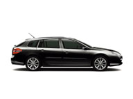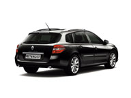 Renault Laguna Estate's marked sills ensure that the car sits squarely on its flush 16- or 18-inch wheels, and its modern, distinctive pedigree is further emphasized by the steeply raked rear screen. The design and elongated glazed area of the rear quarter-light combine with the profiled roof bars to accentuate the model's sporting lines, while the extended rear overhang has resulted in a boot volume of up to 1,593 litres, with plenty of practical stowage solutions and a modular interior. For in addition to its looks, Renault Laguna Estate is also extremely practical. Two chrome exhaust tailpipes hint at the pleasure delivered by the higher performance versions.