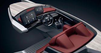 The collaborative project illustrates a new way of designing a boat's steering station, heralding the future of power-boating.