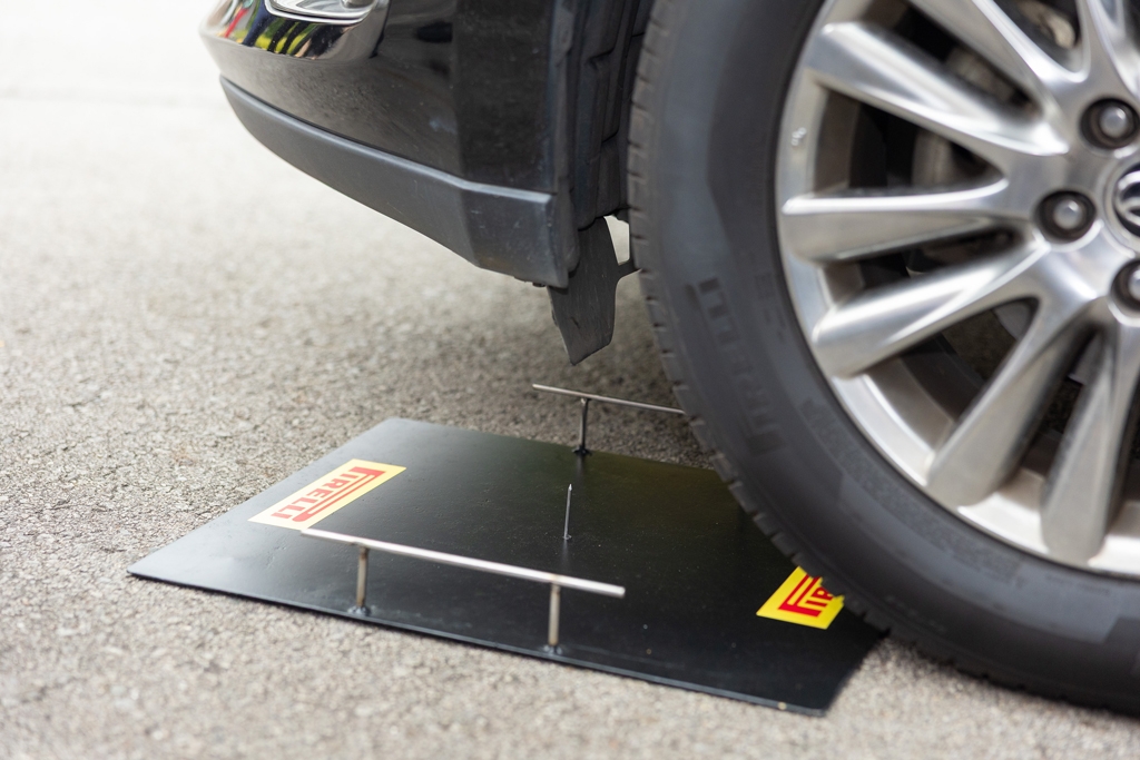Pirelli demonstrated the technology by first taking the tyre pressure of an SUV fitted with these tyres. Then, the SUV was driven over a nail to puncture the left front tyre. Upon closer inspection, nail was partially covered in mastic. After the SUV was driven around the hotel's driveway, the tyre pressure was taken again to prove it had not dropped.