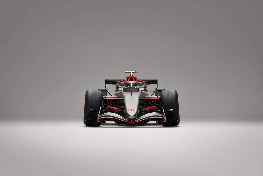 The colour palette features titanium, carbon black, and the newly introduced Audi red. As part of this identity, Audi will also sport red rings, used selectively to underscore its F1 presence.