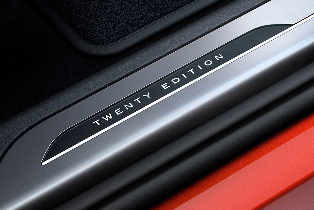 As for the Twenty Edition, it is available an in ultra-metallic Sanguinello Orange finish, with further options including Santorini Black and Ostuni White. It is offered with the Black Exterior Pack, which is complemented by "Twenty" etching and 23-inch Gloss Sparkle Silver Wheels (a Gloss Black option is available). Inside, exclusive features include illuminated "Twenty" treadplates and centre console scripting.