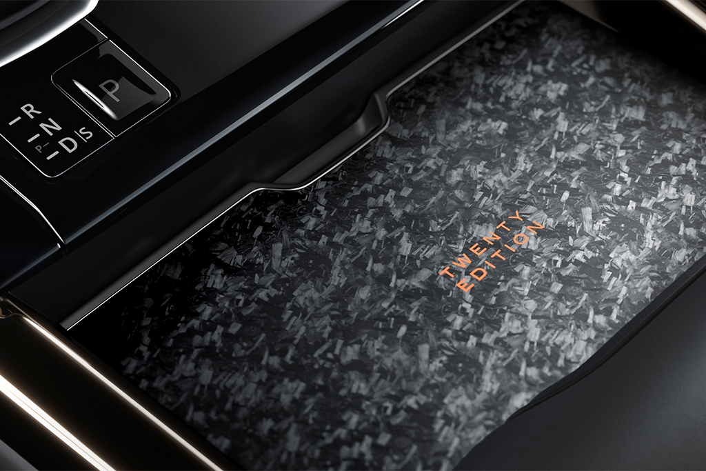 Inside, the Twenty Edition features Ebony Windsor seats from the flagship Sport SV, forged carbon veneers, and a black suedecloth headlining.