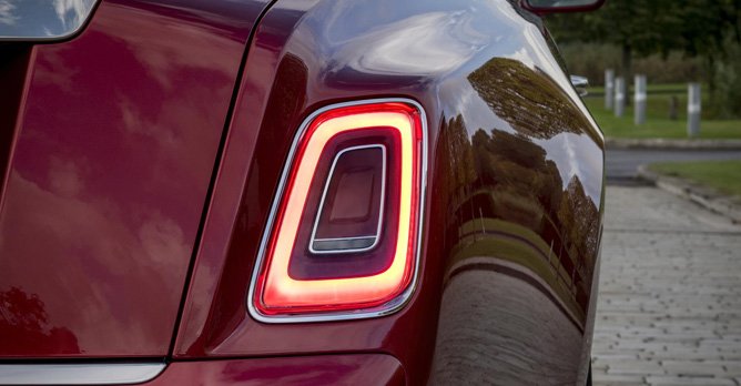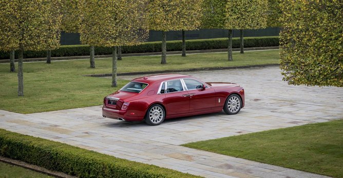 The Phantom's exterior hue features a Bespoke finish of Crystal over Magma Red. Particles of crystal captured in the final layers of finish creating a luxurious luminescence.