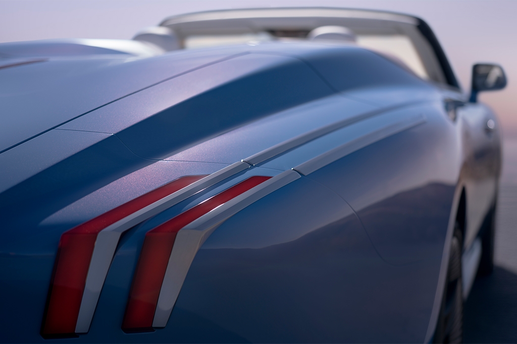 At the back, the surfacing swells around the rear wheel arches, creating an impression of planted, muscular strength that balances the overall design's grace