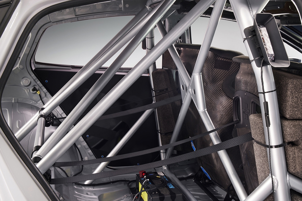 A completely new high-performance braking system, racing seats, and a roll cage ensure the highest possible active and passive safety. The concept vehicle's front is now defined by its sleek, high‑gloss black Tech‑Deck Face, with Skoda lettering replacing the logo on the bonnet. The car is also equipped with new segmented LED rear lights.